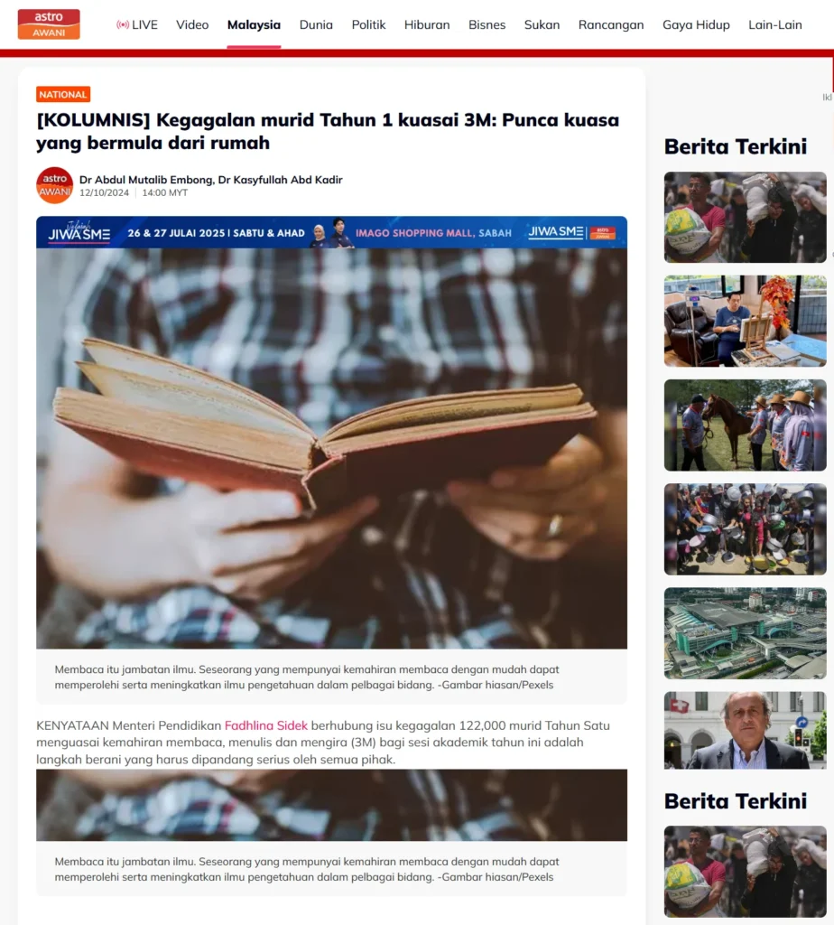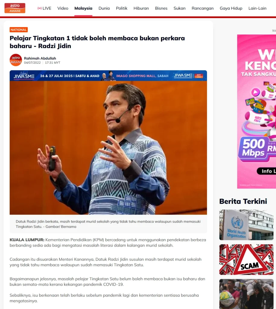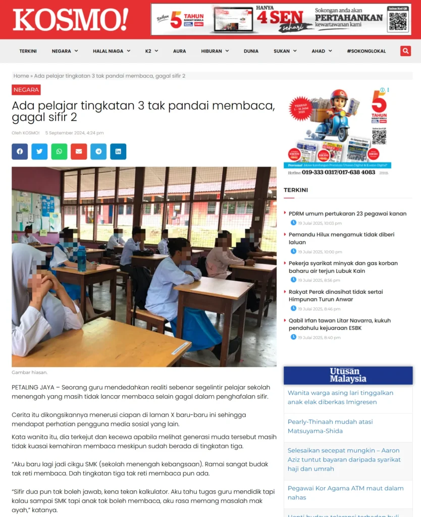 ❗ Setiap tahun, masalah buta huruf di kalangan pelajar sekolah rendah semakin membimbangkan